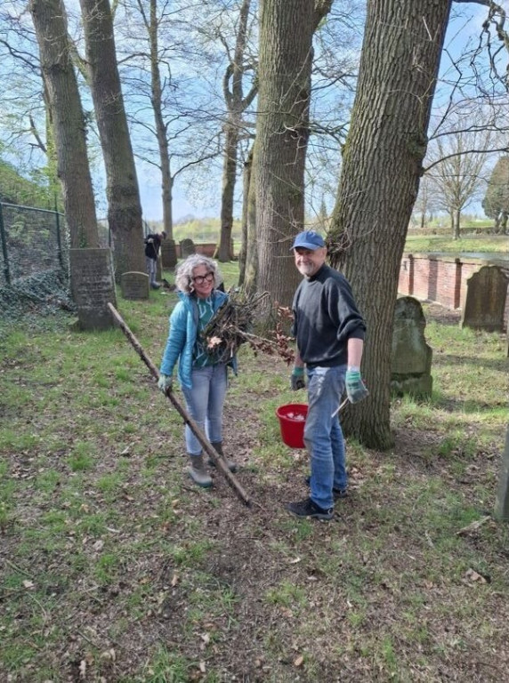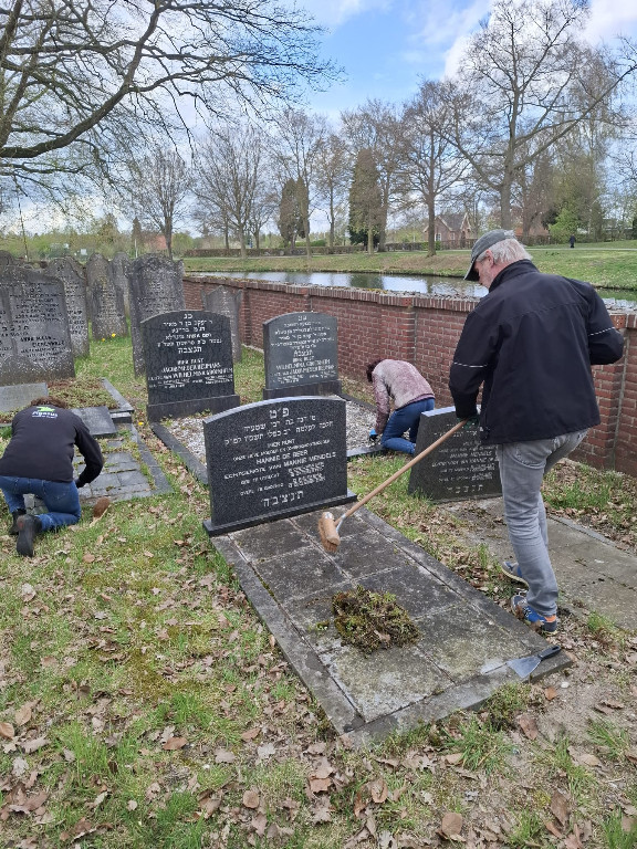 Afgelopen week heeft een werkgroep van de Lions, ‘s werelds grootste serviceorganisatie die zich vrijwillig inzet voor lokale en internationale goede doelen, de handen uit de mouwen gestoken op de begraafplaats. “Ondanks dat er in opdracht van de gemeente door de ROVA jaarlijks onderhoud plaatsvindt aan de paden en het groen rond de graven, was er in de loop der jaren toch achterstallig onderhoud ontstaan. Veel graven waren overwoekerd met onkruid, mos, bladeren en takken. Ook het Metaheerhuisje (de plek waar de rituele reiniging plaatsvindt, red.) kan van tijd tot tijd een grondige schoonmaakbeurt gebruiken”, vertelt Wilma van der Donk namens de Lions. Omdat de meeste nazaten van de hier begraven Joden niet meer in leven zijn of inmiddels op hoge leeftijd zijn, is er nog maar weinig mogelijkheid om het onderhoud structureel op te pakken. Voor Lionsclub Oost Achterhoek was dit aanleiding om de handen uit de mouwen te steken. De serviceclub heeft een werkgroep gevormd die vier keer per jaar op een vrijdagmiddag onderhoudswerkzaamheden uitvoert om dit rijksmonument in goede staat te houden, geheel in de “We Serve”-gedachte van de Lions.